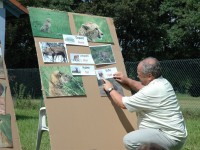 Die Kinder saßen im Gras vor einer großen Wand voller interessanter Tierbilder und Frau Rehrmann erzählte Geschichten von den Menschen und Tieren aus Kenia, die sie auf ihren vielen Reisen erlebte. Nachdem die Kinder die Tiere auf den Bildern erkannten und unterscheiden konnten, dürften sie die passenden Namensschilder in der Suaheli-Sprache den jeweiligen Tieren zuordnen.